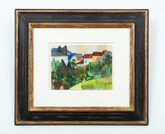 Dated »5. Juli 22« also dated and stamped »Bruno Hesse CH-3399 Oschwand« on the verso, again stamped on the old underlying cardboard by Bruno Hesse, titled »Expressionistische Landschaft«, dated and inscribed »Ausstellungen 1981 = Landau, Alzey, Kaiserlautern, Büdingen«
