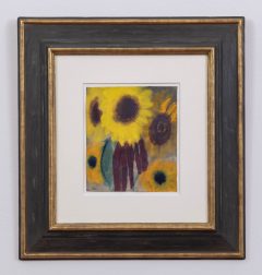 Zeitlebens ist Nolde von Blumen und Gärten fasziniert. Überall, wo er sich häuslich niederlässt, sucht er gleichzeitig die Nähe zur Natur, zur wachsenden und gedeihenden Flora. Auch scheut er die Gartenarbeit nicht und genießt die Freude beim Betrachten der knospenden Pflanzenstauden. Unser Aquarell „Sonnenblumen“ entsteht zu einem Zeitpunkt, an dem sich Nolde schon seit längerem in Seebüll aufhält, wo er sich seit 1927 nach eigenen Plänen ein Wohn- und Atelierhaus errichten lässt. Der mit großem Aufwand und Hingabe angelegte Garten vor dem Haus, durch Bäume vor dem Wind geschützt, erwächst zum unerschöpflichen Inspirationsquell seiner Kunst, so dass der Entstehungsort unserer „Sonnenblumen“ gleichsam hier anzusiedeln ist.
